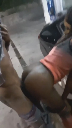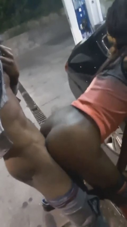 Пока набирается бензин в бак, хозяева машины решили по-быстрому записать видео своего публичного секса на камеру телефона. Оба черных персонажа спустили с себя штаны и спрятались за машину так, чтобы их не было видно из будки оператора заправки. Телочка призагнулась рачком, согнувшись немного в коленях, а ее бойфренд просто долбит сзади, ничего сверхестественного. Кроме отличной фигуры негритянских фигурантов.