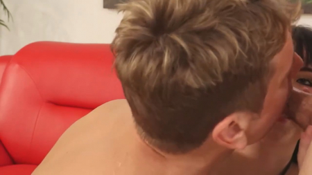 Неформалочка подсела к любимому, не забыв его поприветствовать поцелуем. Как только тот ушел за мобильником, телочка переметнулась поближе к его другу и начала делать ему минет. За этим делом их застал хозяин, который не стал слишком ругаться, хотя был крайне удивлен и прекрасно знал, что его товарищ - бисексуал. Раз неизбежное уже случилось, он устроил групповуху, отыгравшись на обоих, особенно над жопой пассивного приятеля. Выиграла тут больше все брюнетка, которой досталось максимум удовольствия от двух мужиков, хоть они и немного того.