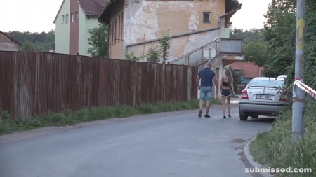 Курящая девка присела отдохнуть на бордюр в не самом благополучном районе. Мимо проходил какой-то парень, который решил познакомиться с маленькой бегуньей в коротких шортиках. Ей он сразу понравился, но когда та поняла, что он позвал не в кафе, а провел к заброшенному зданию, попыталась сбежать, но тот преградил дорогу и на плече отнес внутрь, где стояла кровать и некоторые принадлежности для бдсм. Ножницами здоровенный недруг порезал одежду, привязал руки друг к другу, в рот вставил кляп и трахнул дилдо на палке, потому уже прошелся своим членом, а под конец отшлепал по пизде плеточкой.