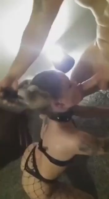 Озабоченный хозяин телочки не упускает из руки ошейник. Это для того, чтобы когда униженная подружка переставала заглатывать до яиц, подтягивать потаскуху к себе, заставляя и дальше давиться вкусной хуятиной, а чтобы она не расслаблялась, мужчина складывает на спину ноги, так личная шлюха не забывает выгибать спинку, чтобы попку было лучше видно. Сосет старательно, с прилагающимися звуками гортани, насколько их может записать смартфон.