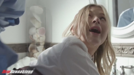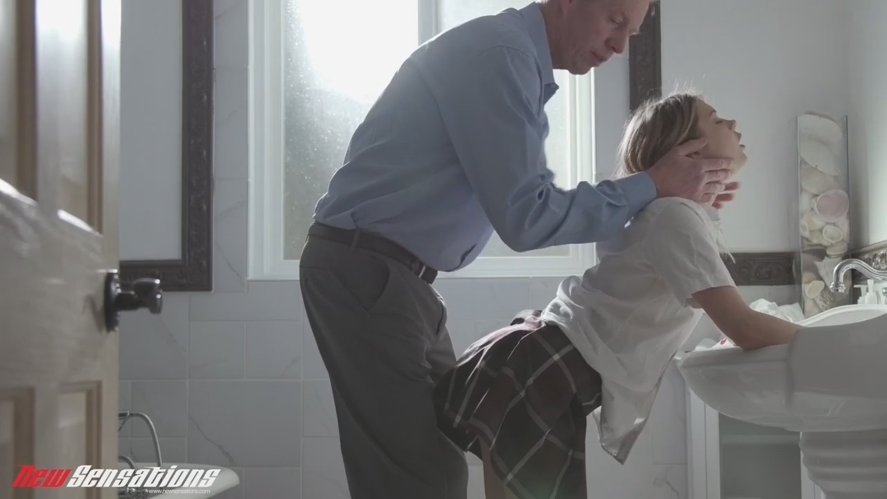 В дверь постучали. Неторопливый мужчина в рубашке открыл дверь и впустил к себе домой маленькую ростом девушку, которая сразу направилась в ванную комнату переодеваться в костюм школьницы. Дело в том, что мужчина некоторое время назад был учителем блондинки. Еще тогда они оба мечтали оказаться в одной постели и сейчас, после совершеннолетия бывшей подопечной, их тайные желания становятся явью. Гостью перепихнули для начала прямо в ванной, а потом они пошли в спальню, где давно не пахло женщиной и сексом, зато теперь несет спермой с лица шлюшки, похожей на малолетку.