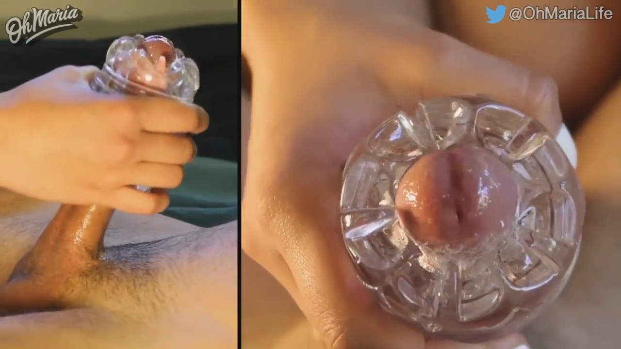 Дрочит бойфренду прозрачным мастурбаторомHD