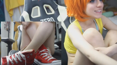 Миллениалы еще помнят такой мультсериал "Покемоны" или же "Карманные Монстры". Там была такая рыжая девочка по имени Мисти в желтом топике. Наверное, кто-то очень мечтал с ней позабавиться, а вот героиня данного ролика дала возможность представить как бы она мастурбировала если бы нуждалась в относительно легких деньгах. Девка поставила две камеры, на одну снимается ее эмоционирующее лицо, другая записывает более откровенные кадры с длинным дилдо. Интернет-шлюшка всеми силами пытается испытать оргазм, а если не получается, то в ход идет обычная имитация.