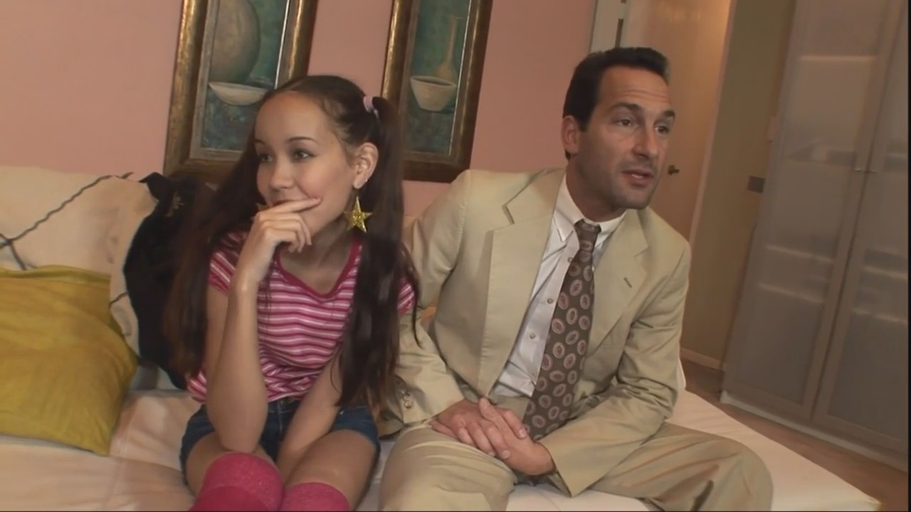 Мелкая дрянь разговаривает на работе со своими друзьями и делится вообще всем, что происходит в этой семье. Очень не вовремя пришел хозяин, который подслушал беседу уроженку Азии и был крайне недоволен выбором жены. Нянька была, во-первых, слишком молода для профессии няни, хоть и совершеннолетняя, во-вторых, явно была шлюхой. Это вскоре подтвердилось, когда мужчина стал намекать на скорое увольнение сиделки для ребенка, но неожиданная гостья нашла выход из ситуации, теперь у него есть своя любовница, о которой жена может и не догадаться. Ее хрупкое тощее тело практически как у малолетки, соски торчат из микроскопической груди, что очень завело дядю в костюме.