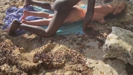 Отошел мужик недалеко, но этого времени хватило, чтобы его дама сердца успела начать трахаться с каким-то чернокожим типом, вытянув длинные ножки по пледу. На пляже всем абсолютно плевать на эксгибиционистов, да и мужу как-то тоже. В наказание за скоропостижную измену и за то, что ей так понравилось жахаться с другим, он дал пососать стройной подружке.