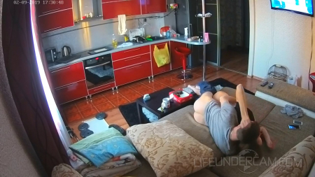 Длинноногая худенькая девица будто специально дразнила своего приятеля тем, что ходила в одних трусиках и футболке. Тому надоело лупить глаза в телевизор и поэтому герой подошел к подружке, начав ее ласкать. Рыженькая добилась своего и уже громко кричит на всю квартиру от экстаза, извивается на пенисе словно уж на сковородке и, так как камера слежения установлена в удачном месте над диваном, становится интересно: а знала ли подружка о ней вообще? Или же кто-то взломал камеру и слил видео в интернет, может быть товарищ сделал это специально, чтобы было при расставании на что передернуть?!
