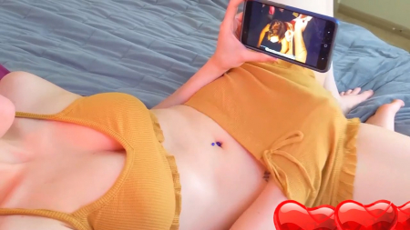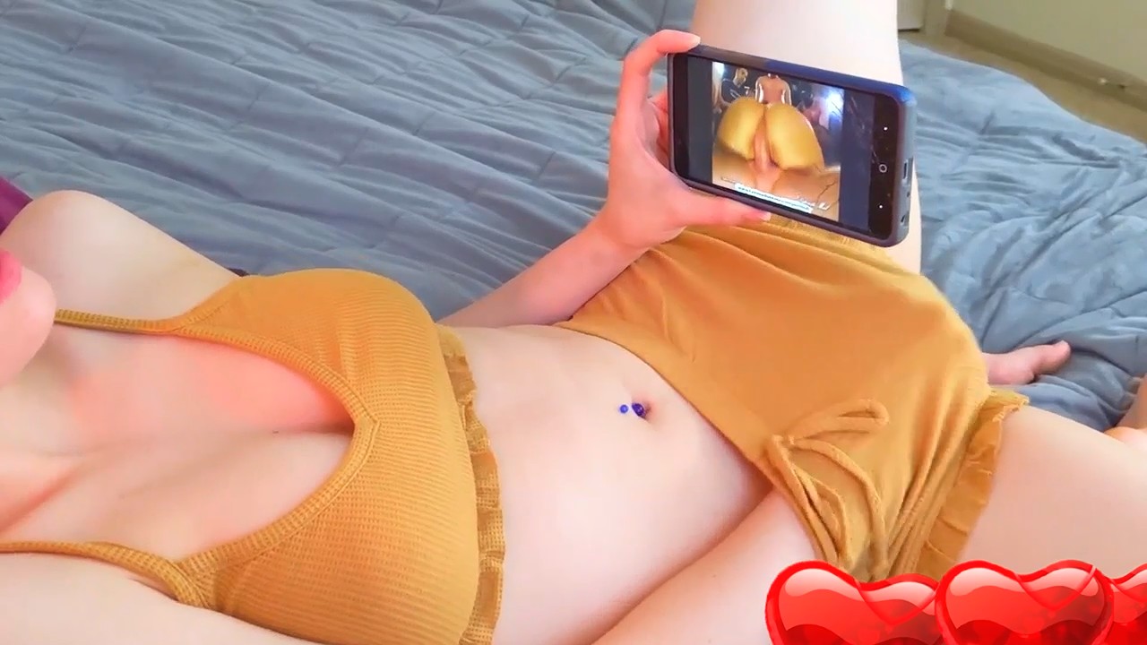 Милая телочка потратила время на поиски подходящего видео на сайте с порнографией и перевернулась на спину, сразу засунув руку под свои домашние шортики. Звук на мобильнике она сделала специально погромче - уж очень ее возбуждает как женские голоса стонут и слышны звуки шлепков тел, не говоря уже о содержании - как всегда возбуждающая групповуха. Малышка быстренько заставила писечку намокнуть, уже можно было кончить, но она села сверху на подушку и стала по ней елозить через свои тряпки, пока не додумалась их снять, чтобы зритель видел самое сокровенное и надроченное пальцами в момент экстаза.