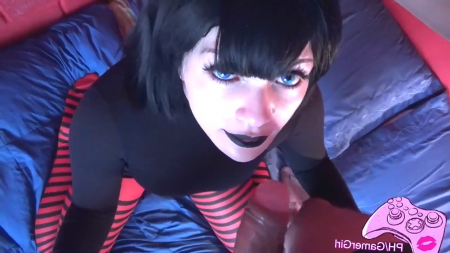 Ой, ну кто из взрослых не умилялся девчонкой - дочкой вампира Дракулы из известного мультика? Многие явно представляли ее в более интересном жанре, поэтому все же кто-то додумался снять домашнюю пародию с минетом от миленькой красивой готички. Глотка глубока, душа темна, все соответствует приятному времяпрепровождению с членом во рту крупной съемкой. Черноволосая дева стерла помаду о ствол и терпела до последнего, чтобы не притронуться к киске руками, но к концу не выдержала, когда вся сперма была уже на языке и симпатичном личике косплей-готки.