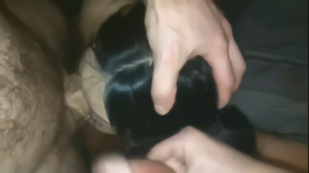 Милейшее создание напилось со своими друзьями и совсем потеряло голову. Ладно, когда они шутили на пошлые темы, другое дело когда они перешли к реальным действиям. При выключенном свете, ее красивое лицо мечется от одного пениса к другому, пытаясь проглотить как можно глубже. Тушь уже понемногу слиплась на длинных ресницах, но это никак не мешает настоящей шлюхе отсасывать сразу двум мужикам, наперебой подставляющим свои полувялые чресла для минета брюнетке и снимающим сверху на камеру с "прожектором".