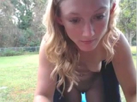 Поставив самый дешевый походный стул на собственном огромном земельном участке, американка приступила голой на нем мастурбировать перед веб-камерой, через которую за этим следят сотни человек одновременно. Буквально через десять секунд после начала видео она безудержно кончает сквиртом, стоная так громко, что захлебывается камера. От такого она отдохнула еще некоторое время и взяла другую игрушку, продолжив кончать разъебанной благодаря онанизму пизденкой, иногда оглядываясь - не пришли ли соседские дети за забором поиграть на площадку. Так наступила темнота и девка прекратила себя пытать удовольствием.