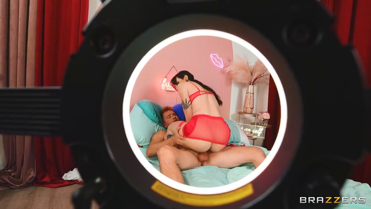 Девушка в кроличьей маске и красном костюме выставила свет, включила запись видео на айфоне и принялась себя страстно ласкать, вывалив наружу натуральные дыньки. Все это время за ее спиной шевелилась шторка, за которой стоял и нагло надрачивал большой хрен сосед по комнате, который давно догадывался, что за его стеной происходит что-то интересное. Не успел парень даже извиниться и убежать, да и не сильно-то и хотелось, он стал частью развратного шоу горячей косплеерши, записавшей крупным планом минет на телефон и просто заставившей трахнуть ее междуножье. Теперь-то у девчули подприбавится подписчиков!