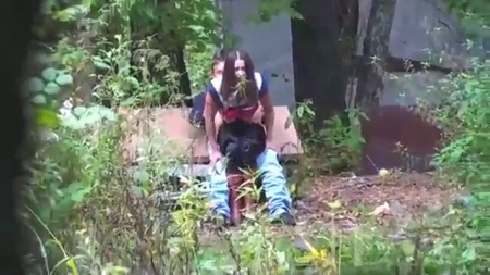 Внимательный и неравнодушный мужчина стал следить за подозрительной парочкой, они будто что-то искали. Оказалось, что они пытались подобрать более удачное место для своих уличных потрахушек, где толстушку смогут выебать глубоко в глотку, а также ее пизду, сильно возбуждающуюся от необычного места - в каких-то заросших ебенях за гаражами. Они так и не узнали, что от начало до конца за ними следили издалека, хотя бабенка не гнушалась стонать во весь голос.