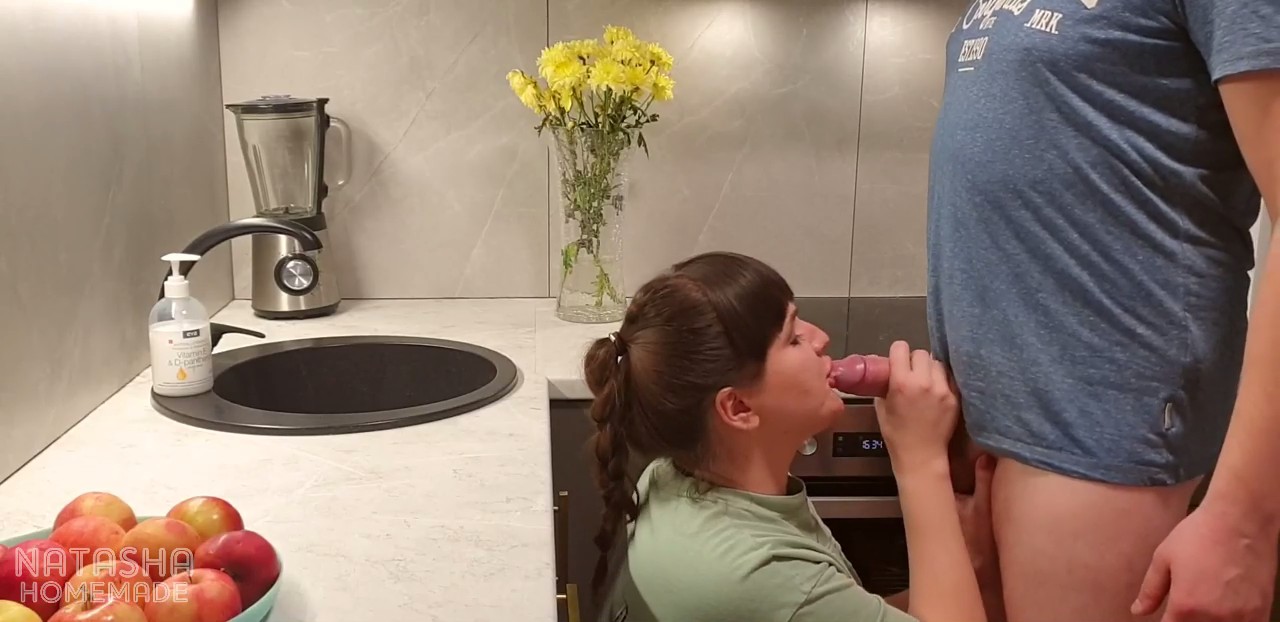 Пышнотелая бабца что-то делала на кухне, когда к ней сзади подошел бойфренд с камерой. Мужчина подманил к себе пальцем толстушку и она сразу поняла, что сейчас придется ему сосать. В ее милой улыбочке читается как она любит это дело и сама, без лишних слов присев на корточки, расстегивает его штаны, чтобы начать уже доставлять ему удовольствие жадным, натренированным ртом. Но на этом их кухонные приключения не закончились, ведь партнер все же немного поебал главную героиню на столешнице и совсем чуть-чуть рачком, после чего со спокойной душой спустил ей первенца за щеку.