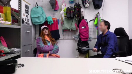 Поначалу уверенная воровка постепенно начала сдавать позиции, так как охранник явно что-то знал и не собирался ее отпускать, как сделал это ровно год назад, день в день. Девушка почти расплакалась от одних лишь вопросов, а когда мужчина вышел, то надела сворованное белье под свою одежду в надежде, что он не заметит. Но девочка не учла - он абсолютно все видел, да и внутри его каморки стоят камеры, так что сучке придется полностью раздеться, вернуть сворованное обратно в пакетик и на полку, а так же сделать все, что скажет извращенец, заставивший ему сосать и раздвигать булки. Все под хныканья шоплифтерши-неудачницы.