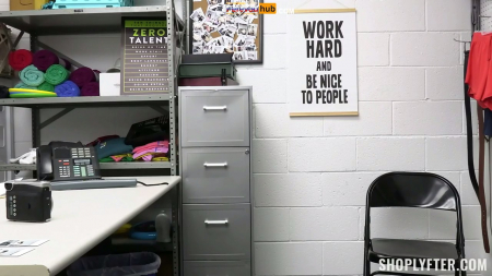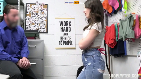 Очередная дурочка, попавшаяся на краже и оказавшаяся под камерами в кабинете секьюрити с ожиданием допроса. Воровка пыталась пригрозить своим знаменитым парнем из команды Клопперс, но не смогла до него дозвониться и пришлось самой как-то регулировать ситуацию, оставляя на себе все меньше одежды при личном досмотре. Вроде бы, осталось только позвонить копам, но преступнице это явно не хотелось бы, поэтому она согласилась на "поработать" на столе вместе с охранником, полностью искупив свою вину. Только зрелый волосатый дядя перестарался и кончил в юную милашку, отпустив ее восвояси.