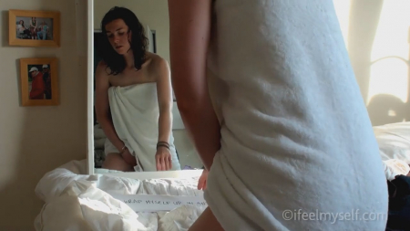 Настолько брюнетка восхитительна, что сама возбуждается от своего отражения в зеркале. Милашка только вышла из душа и закутанная в полотенец начала что-то искать на кровати. Случайно взгляд девушки "упал" на зеркало и сексуальная брюнетка начала теребить клитор, доставляя себе удовольствие и с каждой секундой приближая себя к оргазму.