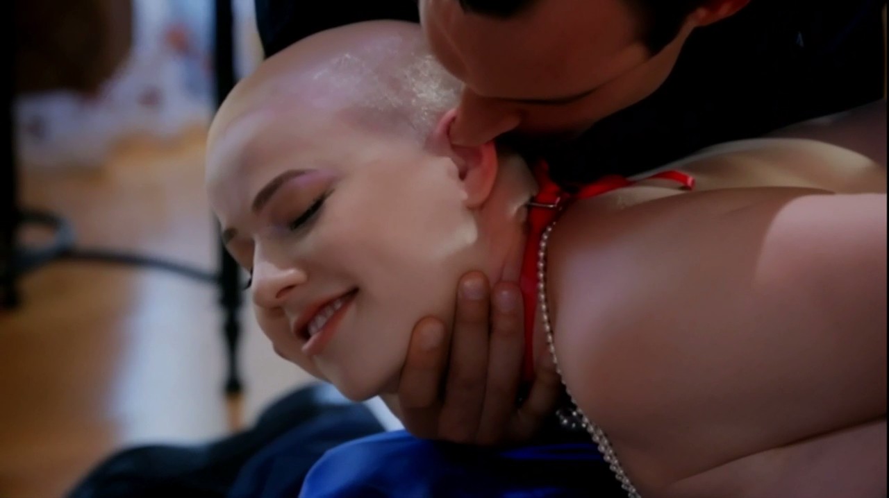 Они любят друг друга: бритоголовая жена и ее обходительный супруг, с которым она любит погулять по городу. С виду они выглядят самой обычной парой, но с каждым новым прожитым годом их сексуальные предпочтения становятся все более изощреннее. Теперь они играют в подчиняющуюся рабыню и доброго хозяина, а руки с ногами скованы цепью, что позволяет делать с любимой вообще все, что угодно. Она терпит легкие шлепки по ягодицам, с радостью из неудобной позиции берет в ротик, чтобы после этого подарить друг другу незабываемый вагинальный секс, делающий отношения еще более яркими.