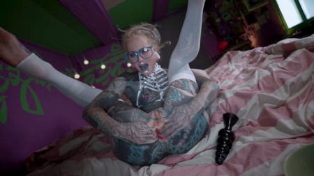 Вся в татуировках, но достаточно симпатичная неформалка в очках решила показать как подготовиться к полноценному анальному фистингу. Она знает о чем говорит, ведь это любимая ее мастурбация, да и если посмотреть любой ролик модели, там будет что-то подобное. Красавица подробно объясняет свои ощущения, описывает боль и приятные моменты с секс-игрушкой, а под конец ее растянутая попка действительно умудряется принять небольшой девичий кулачок. Только теперь интересно для кого она подготовила себя: для мужчины или для другой девушки?!
