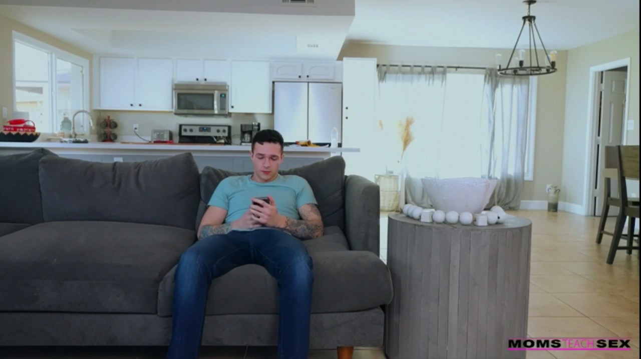 Мама будто специально соблазняет своей худой круглой попкой молодого пасынка, который не может оторвать взгляда каждый раз когда та нагибается. В этот раз она пролила воду на себя и попросила закрыть глаза, чтобы она смогла раздеться и пойти принять ванну. Сама женщина потерлась о спину торчащими сосками маленькой груди. Выйдя из душа обернутой в полотенце, она попросила закрыть глаза, а мальчик признался, что мечтает, чтобы она ему отсосала. Удивившись наглости пасынка, блондинка принесла маску для сна и начала ему делать минет, после чего они любовно потрахались, несмотря на то, что отец бы очень разозлился от одного лишь факта, что он видел ее голой. Впредь они могут заниматься этим каждый раз когда папа уезжает из дома, но смотреть все еще запрещено.