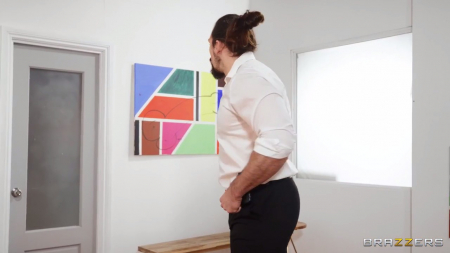 Всего одна посетительница выставки пришла посмотреть на работы малоизвестного художника. Первым, кто обратил внимание на ее задницу, стал охранник, но его спугнул более старший коллега, но и он сам стал очарован выдающимися прелестями розововолосой девушки. Оставшись наедине с собой и получив пару предупреждений о том, что искусство нельзя трогать руками, ценительница увидела как одна из картин порвалась и оттуда выглянул толстый член. Как оказалось, это сам художник так решил порадовать себя и незнакомку, хотя его не узнали даже работники данного помещения, зато телка узнала размер его "кисточки".