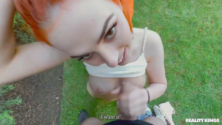 Почти весь алкоголь выпит, все шашлыки съедены, остается только мило общаться друг с другом, подыгрывая на акустической гитаре. Один из молодых людей собрался отойти за кустики чтобы отлить, вслед за ним, предупредив всех остальных, отправилась рыжая девчонка, захотевшая посмотреть как из его шланга льется моча. В какой-то момент она взяла его член и удивилась насколько приятно его держать в руках, а еще лучше у себя во рту. Так как рядом есть только скамейка, пришлось ее использовать для любовных приключений, а потом вытирать лицо подружки влажной салфеткой, чтобы никто не догадался.
