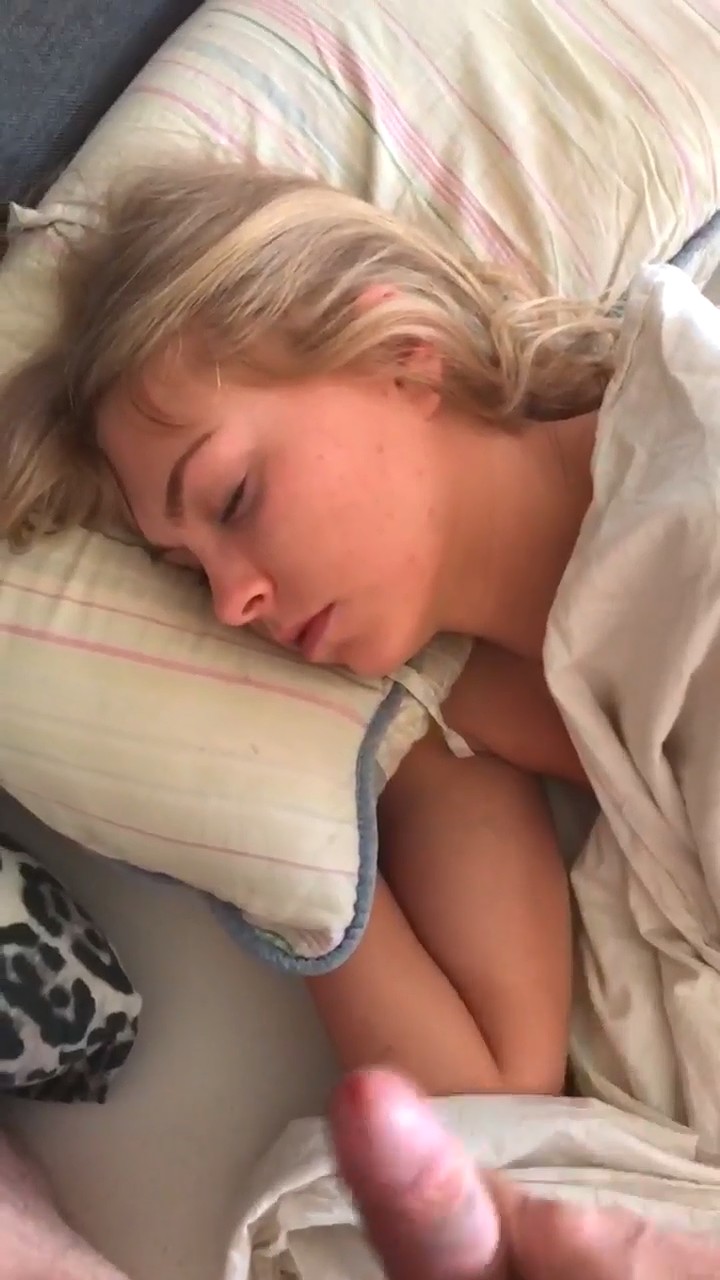 Пара уже достаточно давно живет вместе, поэтому парень ничего не стесняется, связанного с сексом с подружкой. На этот раз он, вооружившись мобильным телефоном и включив на нем запись видео, подошел к своей любимой и начал дрочить член рядом с ее головой. Она на данный момент все еще спала и вот-вот готова была проснуться, но он ускорил процесс, кончив на лицо с закрытыми глазами. Даже не удивившись, милая хотела пожелать доброго утра, но произнесла только "Oh, my God!".