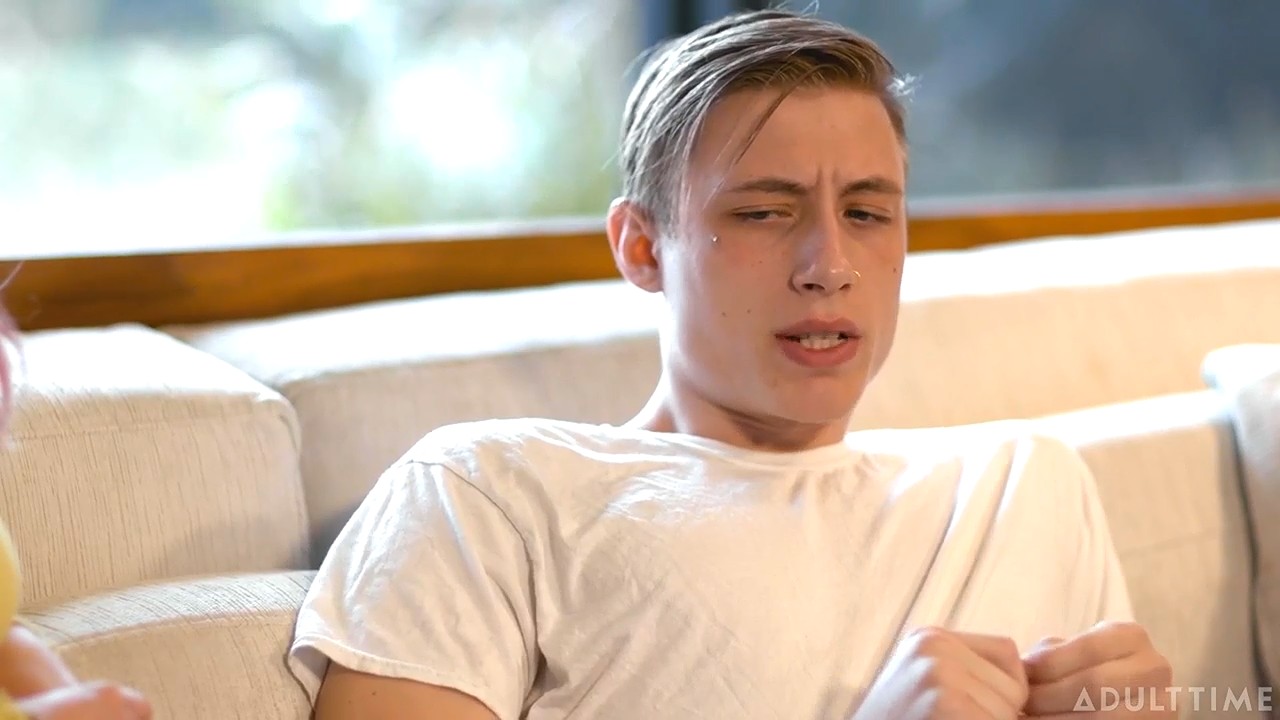 Мачеха уже который раз пытается привлечь пасынка к работе по дому, но его интересует только телевизор, игровая приставка и чатиться с друзьями с телефона, больше совершенно ничего. Подруга ей посоветовала как-то поговорить, образумить уже совершеннолетнего парня, но тот будто не слышит, что ему пора начать что-то делать. Тогда розововолосая крупная женщина придумала как напугать мальчугана: она надела секси наряд и вернулась к нему в спальню, но тот вообще не испугался, наоборот, достал свой хуй и стал дрочить. На удивление, мачехе последующий половой акт понравился, так как она даже не ожидала таких успехов от нахлебника.