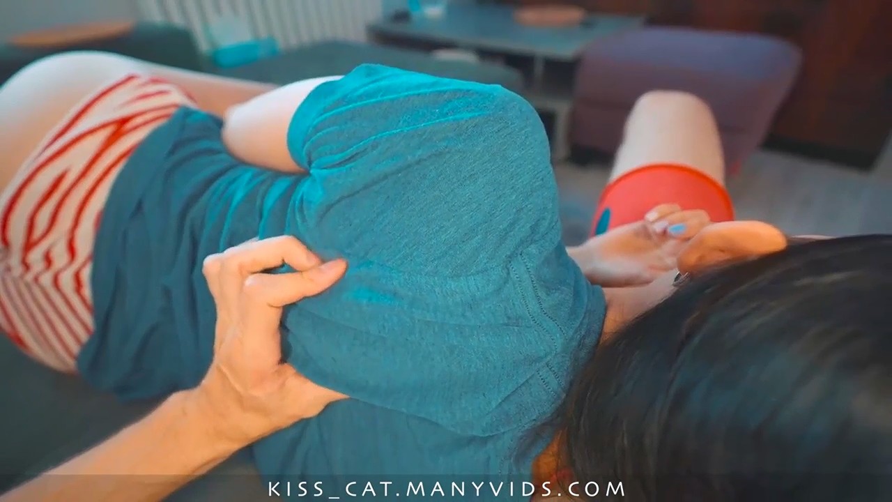 Парень смотрел телепередачу про Аргентину когда к нему поздороваться пришла сестричка. Она пожаловалась, что очень плохо спала и теперь ей требуется массажик, а так как никого больше дома нет, то придется его сделать брату. Молодой человек начал с плеч, а потом грудастая девушка ради удобства предложила лечь к нему на коленки перпендикулярно, но его движения становились все ближе к заднице, а потом и вовсе шаловливые пальцы вонзились в уже влажную пилоточку отсасывающей сестрички, принявшей сперму в рот, но выплюнувшую на братца, так как еще не привыкла глотать.