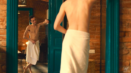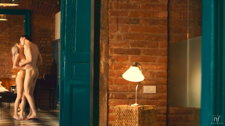 В интересных дорогих апартаментах в стиле лофт живет молодая парочка: душ, комнаты и спальня, все это находится практически рядом друг с другом, поэтому с другого конца квартиры было видно как девушка принимает душ в прозрачной кабинке. Бойфренд пришел в полотенце, дождавшись пока любимая смоет с себя грязь. Он нежно поцеловал подружку и скинул полотенец, обменявшись взаимными оральными ласками прежде, чем красиво заняться любовью с топовой актрисой из России и накончать на ее приятную не сильно большую грудь, попробовавшую семя любовника с пальчика. Пришла пора смывать грязь заново.
