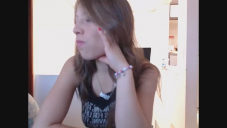 Симпатичная очаровашка сначала просто общается по веб-камере, но потом начинает потихоньку теребить киску. Делать это прелестной девушке нужно предельно осторожно - ведь буквально в нескольких метрах от девушки стоит мать, спасает только то, что матушка стоит к своей распутной дочери спиной.