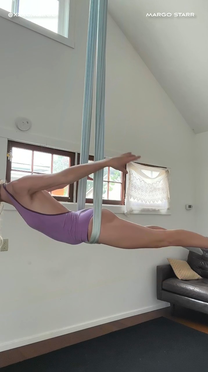 Акробатка Margo Starr сквиртует в воздухе от огромного дилдо