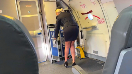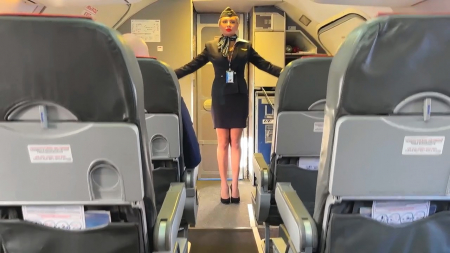 Первый полет шлюшливой стюардессы в новой авиакомпанииHD