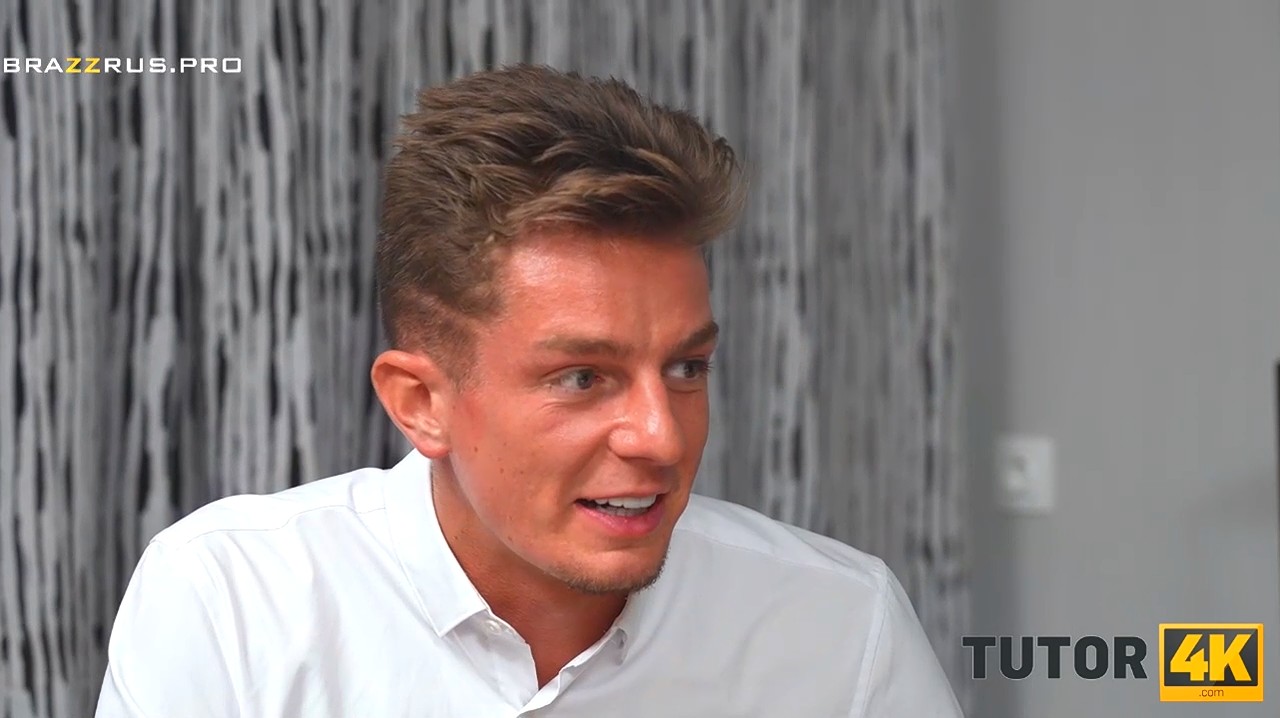 Итак, молодой человек пригласил к себе в гости репетитора по немецкому языку - очень сексапильную дамочку старше 40 лет. Она с радостью взяла соленые орешки, так как в арахисе много белка и приступила к работе, почти не обращая внимание на странности поведения клиента. В какой-то момент он начал давать пить много воды, а потом взял и взорвал петарду за спиной незнакомки, отчего та намочила штаны. Дабы смягчить ситуацию, он попытался вытереть влажной салфеткой киску, но та еще сильнее намокла. Так как адреналина уже больше некуда в крови взрослой красавицы, парень разорвал ее штаны между ног и принялся лизать. После этого возбужденная учительница уже не смогла остановить желание трахаться.