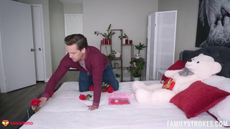 Падчерица отправилась в школу, чтобы там попробовать построить отношения с мальчиком, ее лучшая подруга решила сделать так же в этот день Святого Валентина. В это время отца героини расстроила жена - она не смогла приехать отметить из-за важной встречи, а муженек уже разложил все сюрпризы на кровати, оставив так лежать. Смуглая падчерица вернулась со школы с подружкой не менее расстроенной, ведь их план не сработал, но это не значит, что они перестанут веселиться, вместе раздевшись в спальне хозяина. Особенно поразительна белая худая сучка - ее фигура обворожительна и папочка долго не смог подглядывать за подружками, чтобы потом не присоединиться. Всем испортили праздник, но вечер удалось наладить теплым семейным тройничком с милой гостьей.