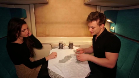 Молодые люди оказались в одном вагоне поезда. Парень очень скоро признался, что едет на необычную вечеринку - секс-вечеринку, а его спутница сама напросилась тоже поучаствовать. Поняв с кем придется иметь дело, ребята тут же достали карты и сыграли в дурака на раздевание. Этого дубля было достаточно, чтобы процесс пошел дальше и любовнички перепихнулись в поезде. Красивые пассажиры поезда расположились вдвоем на сидениях и трахались до момента, пока не пришел конец в рот девушки, раскинувшей ноги между верхними сидениями, чтобы ей сладко полизали развращенную писечку.