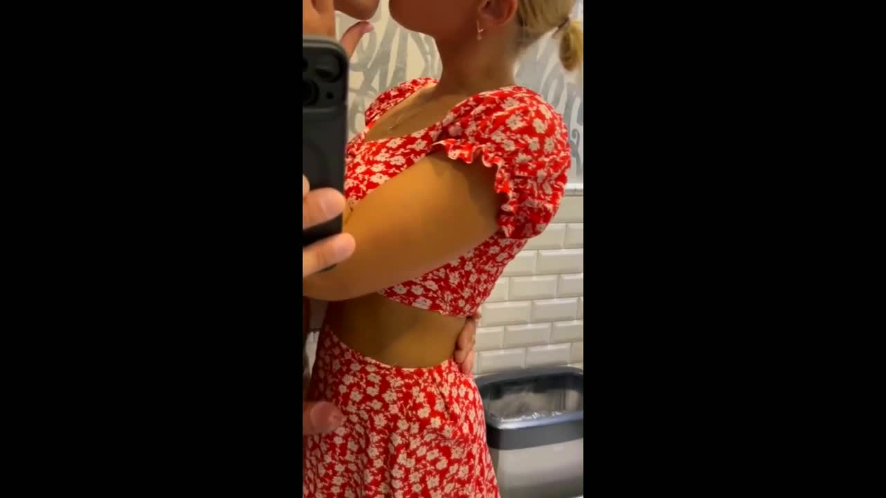 Аппетитная русская самочка со светло-русыми волосами заперлась в туалете клуба вместе со своим любовником. Ебырь включил запись видео на телефоне и начал снимать как красивая русская шлюшка в красном платье с цветочками ему сделала минет. После этого она дала полизать чуваку в белых шортах сладкую писю, держа самостоятельно мобильник, дабы запечатлеть лучшие ракурсы в зеркале во всю стену. После этого пара поебалась в позе загнувшись, но сучка не захотела глотать сперму или выплевывать изо рта, она посмеялась с того, что ебарю пришлось кончать в мусорку, стоящую возле унитаза заведения.