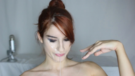 Рыжеволосая сучка в очках встает раком на широкой кровати и вонзает в вагину кончающий фаллоимитатор. Девушка меняет позы и все трахает и трахает себя в пилотку. Но неожиданно симпатяга вставляет игрушку в попку и выдавливает немного спермы в анал, после чего льет сперму на прекрасное личико.