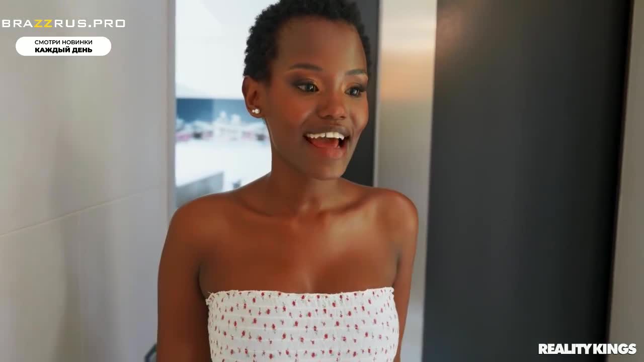 Isimbi исполнилось 20 лет и она хочет отметить эту годовщину отличным сексом с соседом по комнате. Как раз именно сейчас он принимает душ и мокренький, ровно как и киска короткостриженной девушки из Руанды. Ей нужно пойти к нему и подсмотреть. И надо же, его член так сильно возбужден, будто бы ждал руммейтку все это время. Ее образ отлично подчеркивается большими сиськами и довольно массивной задницей, которой уделили не так много внимания, сколько хотелось бы. Супер грушевидная черная женщина с тонкой талией и неусмиримым желанием ебаться во всех возможных позах. Капельки воды делают цвет кожи таким притягательным.