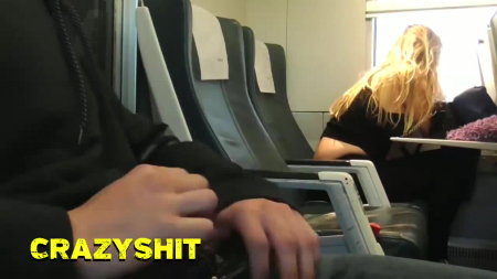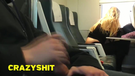 Эксгибиционист достал волыну в поезде и стал гонять шкурку. Вагон практически полностью пустой, лишь одна незнакомка в солнцезащитных очках сидела в ряду с противоположной стороны. Она далеко не сразу заметила дрочащего эксгибициониста, но когда увидела чем тот занимается, пыталась отвернуться, но животная похоть охватила ее разум и заставила приподнять столик, чтобы поскорее присесть рядом и начать сосать, несмотря на то, что включена камера на запись. Извращенец попытался замазать лицо на всем эпизоде, но у него плохо получилось, так как хотелось показать, что он кончил незнакомке в ротик, неожиданно приютившей его хуй за щекой.
