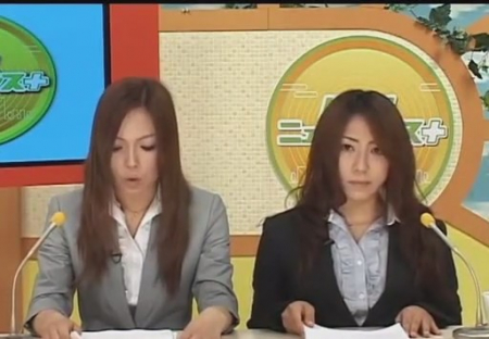 Как обычно, азиаты отличаются от остальных наций нормами морали. Для них секс в прямом эфире - это нормальное явление. Очаровательные ведущие читают новости, а в это время под столом два мужчины лижут и и дрочат девушкам пилотки. Симпатяги стараются не показывать своего удовольствия зрителям. А после девушкам на стол ставят две чаши, в которые ведущие пописали.