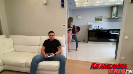 Муж постоянно играет в игрушки, а его вторая половинка не сильно разделяет увлечения. Ей больше нравятся не приставки playstation, а члены и один из них пришел в гости, посидеть рядом и полюбоваться не только картинкой на телевизоре, но и замечательной девушкой, с которой они вместе ушли на кухню. Там он оттрахал ее голову, заставив смеяться, что пошло не по плану, а потом отымел за стеной, где вообще нет двери на кухню. Супруг обо всем догадался через 10 секунд - любимая вышла оттуда со спермой под носом и буквально побежала в ванную комнату, пока любовник ищет пятый угол по квартире.