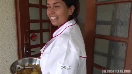 Богатенький мажорчик прогуливался по родным постсоветским улицам и набрел на старенькую столовую, куда он хотел зайти перекусить. На пороге чистила картошку привлекательная повариха, попросившая подождать. Но тут дело в том, что у молодого человека есть не только пищевой голод, он также хочет кого-нибудь трахнуть, а чтобы дамочка согласилась, он предложил ей немало денег, чтобы та себя показала и дала отъебать прямо на кухне столовой. И все шло отлично - это был крутой секс на полу с окончанием на грудь, но прибежала старая начальница, которая отругала бедную повариху, а парень просто сбежал.