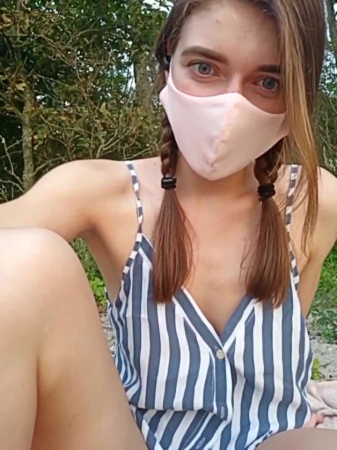 Кто-то из очевидцев написал, что девушка некоторое время отдыхала в Евпатории и видео, вероятно, снято тогда же и там же. Брюнетка с двумя хвостиками по пути включила трансляцию на телефоне для своих "котят" - это она так ласково называла несколько сотен зрителей, которые уже с самого начала приготовились как следует подрочить вместе с богиней в маске на лице. Крымчанка пришла на пляж с анальной пробкой, но начала мастурбировать писечку рукой и уже чуть позже применила резиновый фаллос для мастурбации ее маленькой дырочки, практически не стесняясь проходящих мимо голосов.