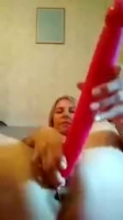 Синеволосое уебище кончает от вибратора и толстенной дилдо-машины