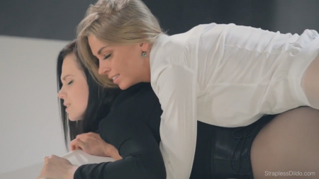 Страстные подружки и их игрушка - вот занимательное зрелище, способное возбудить даже самого строго зрителя. Симпатичная брюнетка вылизала пилотку блондинке и потрахала ее пальчиками. А блондинка отблагодарила подружку за ласки и отымела брюнетку страпоном через разорванные колготки. Но вот удивительная вещь - блондинка тоже получила от этого огромное удовольствие. Ведь страпон у девушки необычный - крепится не на ремне, а вонзается в киску как дилдо.