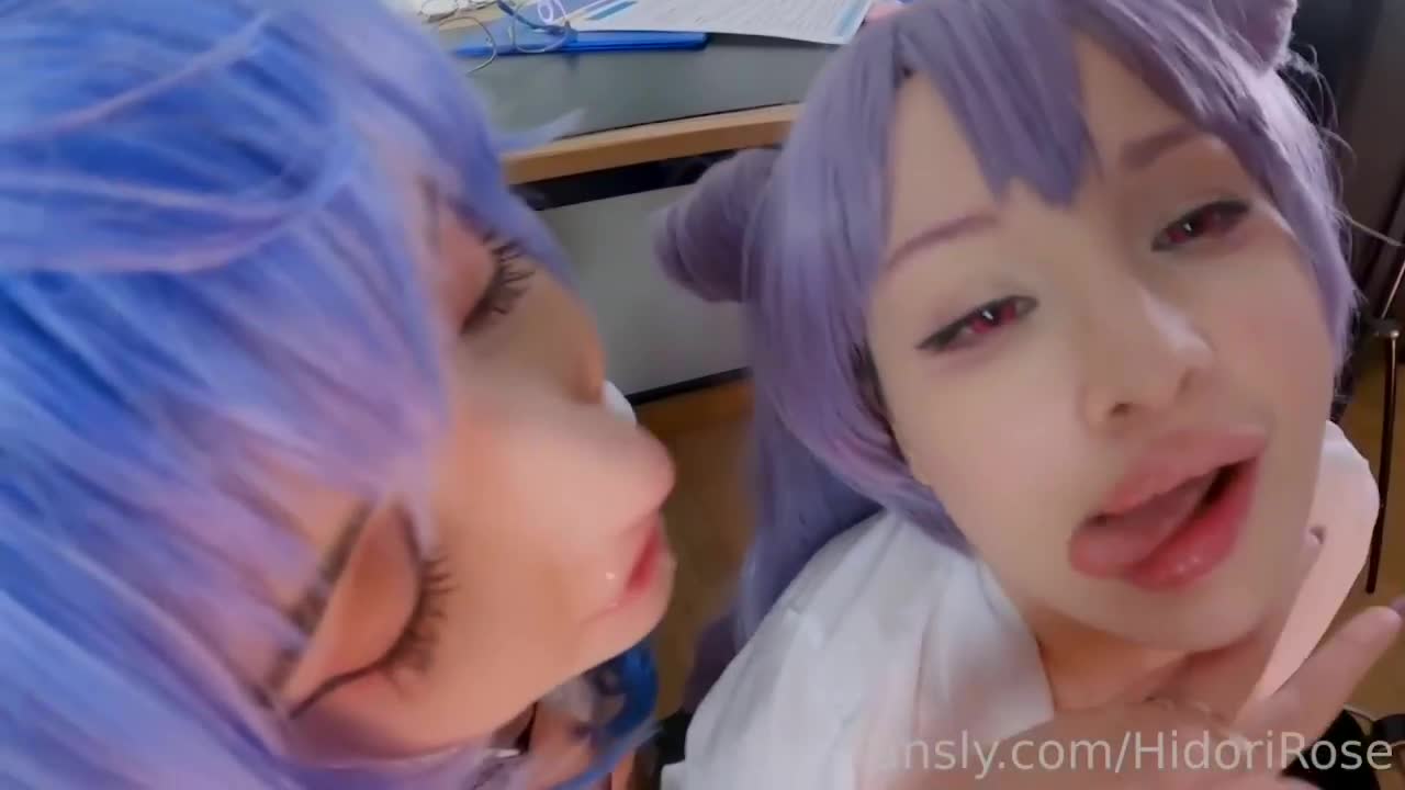 Две милые, аж пищащие как азиатки, девчонки в чулочках с прикольным цветом волос познакомились в офисе когда одна отдавала бумаги второй. Новые подружки тут же занялись кунилингусом на столе, но их побеспокоил очкастый сотрудник, подрочивший киску развратной коллеги без спроса. Ботану начали сосать его небольшой хуец, а там и еще один парень подоспел на отсос, пока их бесплатно раздают аниме-тяночки. Видимо, для бисексуалок размер мужского полового органа не так важен как красота груди или вкус кисок.