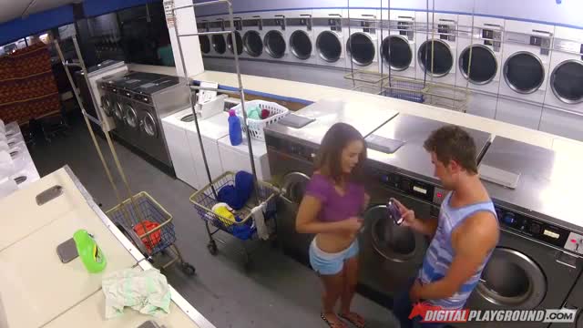 Молодая девушка пришла постирать белье первой, следом за ней зашел какой-то парень, который стал снимать попку милашки в коротких шортиках. Довольно быстро она заметила извращенца и отобрала у него телефон, чтобы посмотреть чего он там такого наснимал. Но вскоре девица передумала и подошла поближе, отдав телефон и приподняв одежду, чтобы тот поснимал сиськи. Сильнейшее возбуждение нахлынуло на давалку, которую оттрахали посреди стиральных и сушильных машин раком, а также внутри тележки для белья. [DigitalPlayground] Dillion Harper screws a stranger in a laundromat.