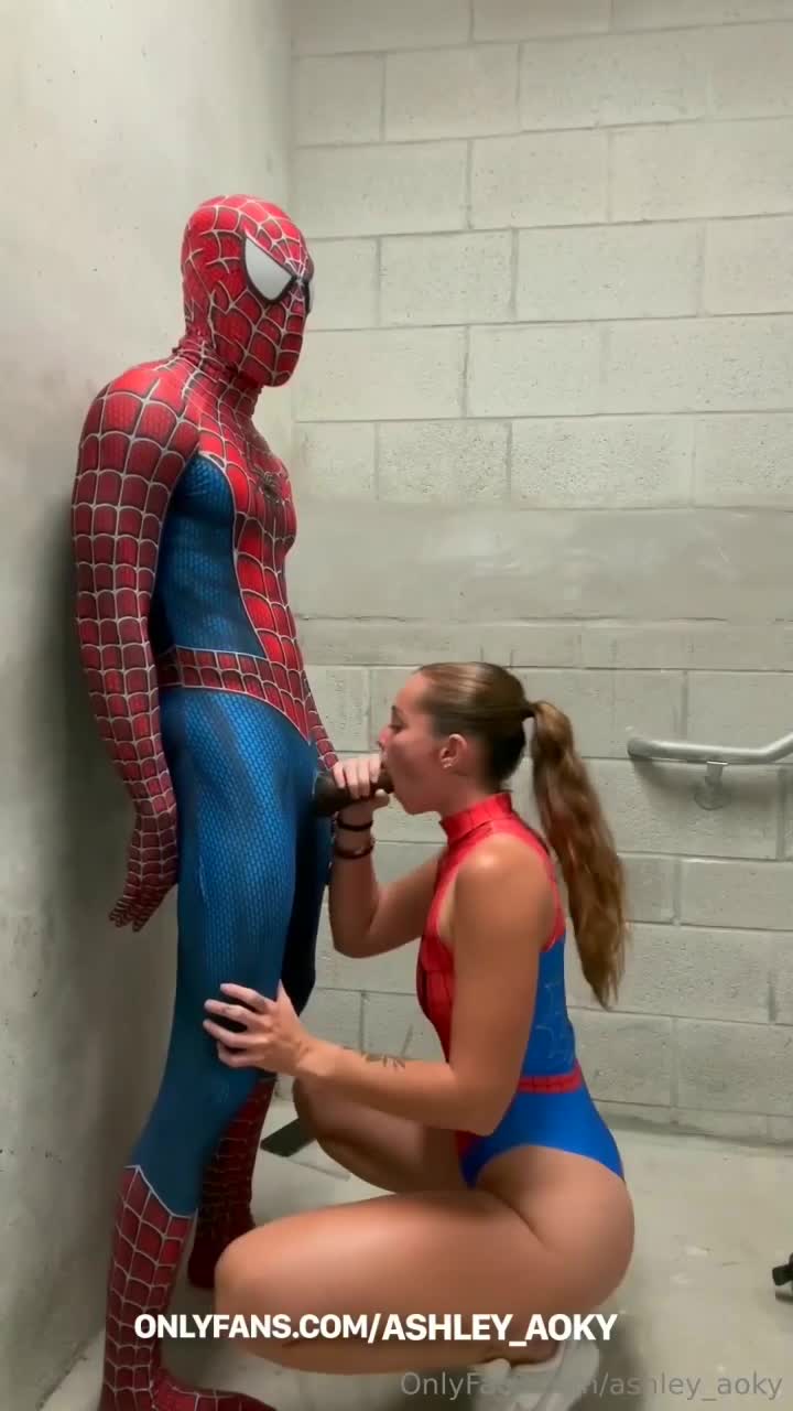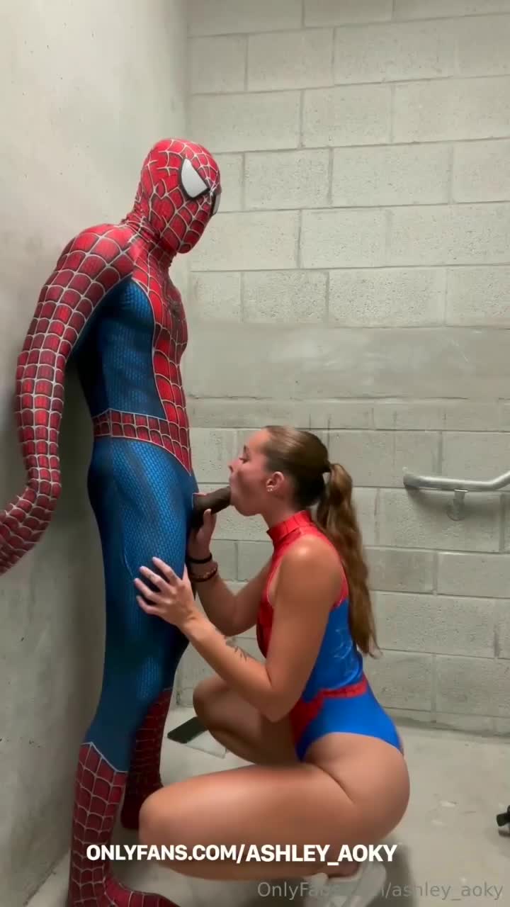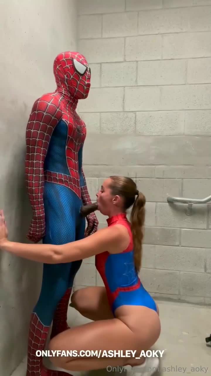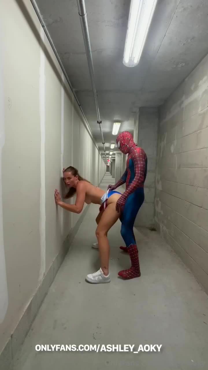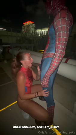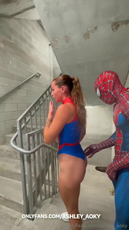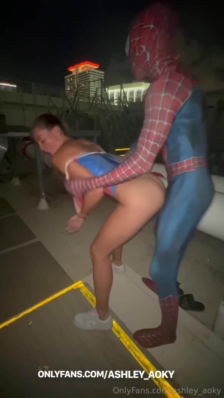 Черный чувак прикупил для себя костюм Человека-Паука, для красивой чернильницы сексуальный наряд красно-синего цвета тоже нашелся. Вместе парочка извращуг отправилась на стройку, где ребята заприметили незапертую дверь. Так как уже слишком поздно для работы, все строители ушли, а свет никогда не выключают. Именно поэтому половые партнеры смогли беспрепятственно перепихнуться на лестнице, даже встав на перила, а также на ночной крыше здания. Чувак в маске оглядывается по сторонам, а вот его перевозбужденной подружке адреналин застелил все чувство самосохранения.