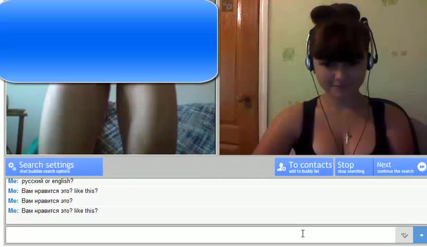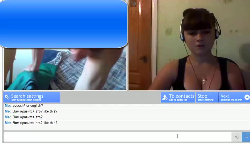 Онанист попал на случайную русскую девушку в обычном чате, где таких как он целые тысячи. Красотка не переключала комнату и смотрела на член незнакомого ей парня на другом конце интернета. Дрочер узнал, что она русская, так как та ответила текстом, практически не отрывая взгляда от его ствола. На тот момент симпатяга еще не понимала, что ее могут снять записью экрана, потому показала свои клевые сиськи, пососала пальчики и поигралась ими с собственными сосочками, пока онанист яростно гонял шкурку на красотку.