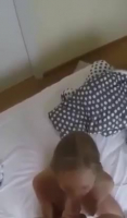 Несколько лет назад эта девушка была очень красивой и стройной, что запечатлено на камеру телефона, с которой голый бойфренд пришел будить подружку. Она была рада проснуться, чтобы заняться утренним сексом - это вообще обожают многие девушки. Она с радостью покрасовалась формами перед любовником, после чего принялась делать ему глубокий минет. После этого член оказался сразу в бритом пирожке и интенсивный секс продлился несколько минут, пока парень не встал над подружкой, чтобы кончить ей на животик. Та поднялась, чтобы обсосать остатки спермы с его головки.
